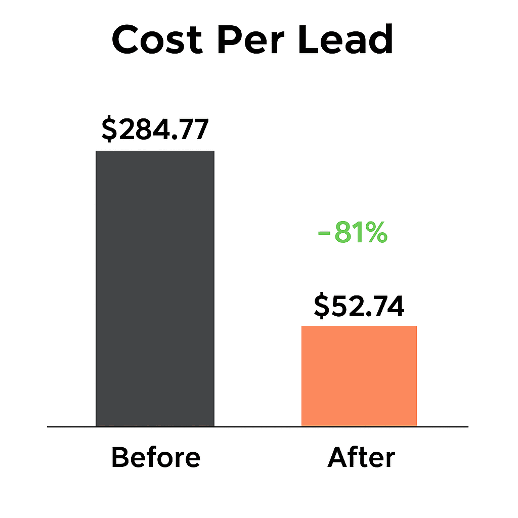 81% lower costs: Cost per result dropped from $284.77 to just $52.74. Some ads hit as low as $17.54!